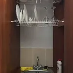 Mikrovågsugn, kylskåp och glasföremål finns i köket.Den här lägenheten ligger intill järnvägsstationen Lviv Railway.